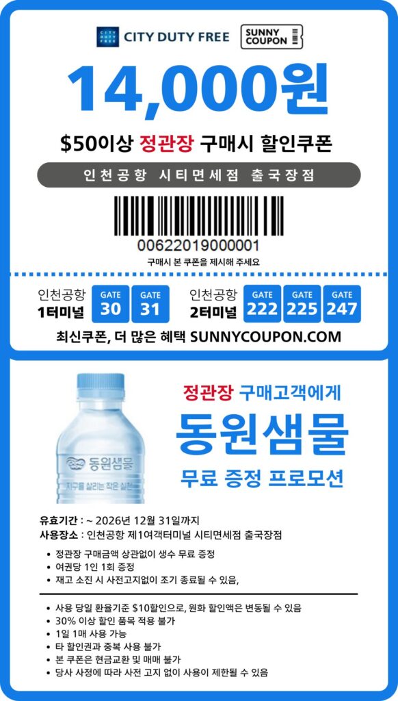 인천공항 시티면세점 생수 동원샘물 증정 프로모션