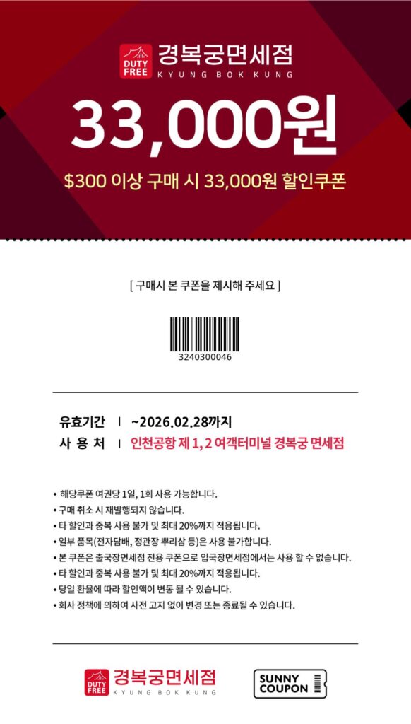 - 사용 장소: 인천공항 제1, 2여객터미널 경복궁면세점 출국장점