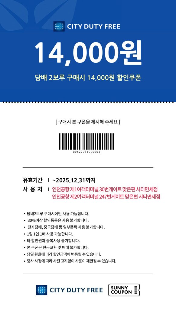 - 혜택: 담배 2보루 구매 시 14,000원 할인