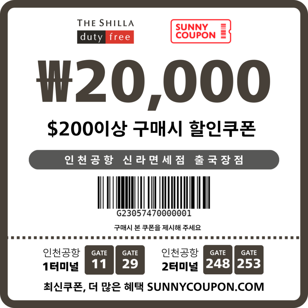 - 사용 장소: 인천공항 제1, 2여객터미널 신라면세점 출국장점