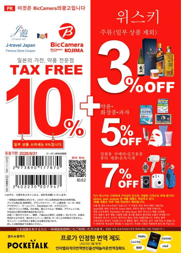 빅카메라 매장에서 전자제품 외에 주류(위스키, 와인 등)코너, 의약품 코너, 장난감/피규어 코너에서도 다양한 쇼핑을 하실 수 있습니다.